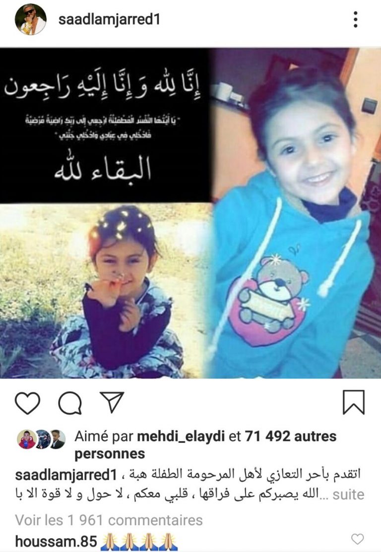 بعد الفاجعة.. سعد لمجرد يرثي الطفلة "هبة" ويوجه رسالة مؤثرة لعائلتها
